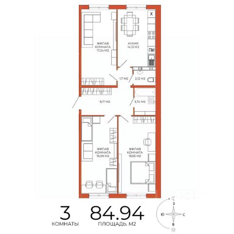 Квартира расположена на 17 этаже, откуда открываются отличные виды.