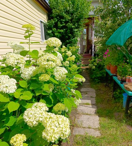 Участок ровный и очень ухоженный: качели, беседка, мангал, много многолетних цветов.