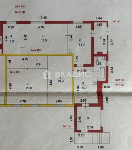 Общая жилая площадь объекта составляет 64,4 кв.м., включая неотапливаемые помещения. В составе жилой площади выделяются две комнаты площадью 16,7 и 10,5 кв.м. соответственно, просторный санузел площадью 11,8 кв.м., кухня площадью 9,5 кв.м. и терраса.