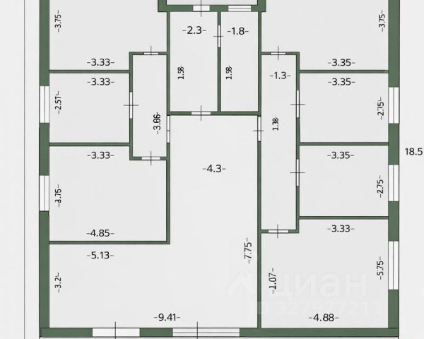 2 этаж: 1 комната - 18,5кв.м; 2 комната - 17,2кв.м; 3 комната - 18,5кв.м; кладовая - 3,0кв. м; коридор - 13,4кв.м; туалет - 3,1кв.м;