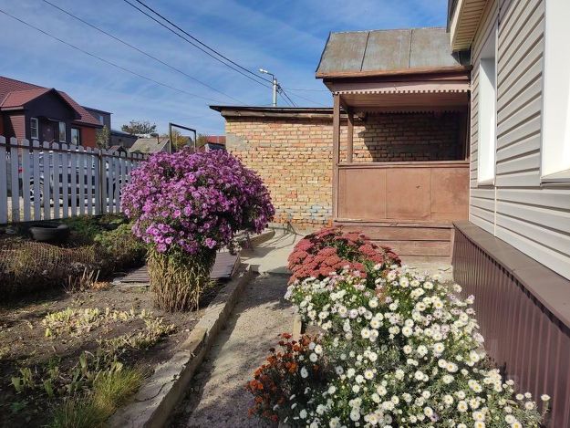 Обустроенная территория с плодоносящим садом (элитные сорта плодовых деревьев и кустарников), огородом (можно сделать зонирование и ландшафтный дизайн), теплицей, системой полива, беседкой с печью и камином, гаражом. Двор, отмостка, цоколь, садовые дорожки выложены натуральным долговечным камнем горной породы лемезитом.