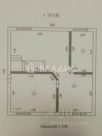 - общая площадь 50 кв.м, размер 7 на 7 м;