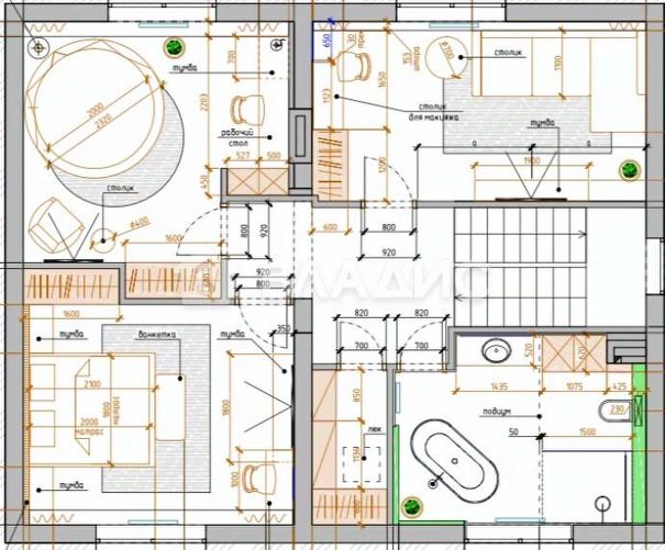 2 этаж 289 кв.м. (приватная зона — спальни, ванные комнаты, гардеробные)