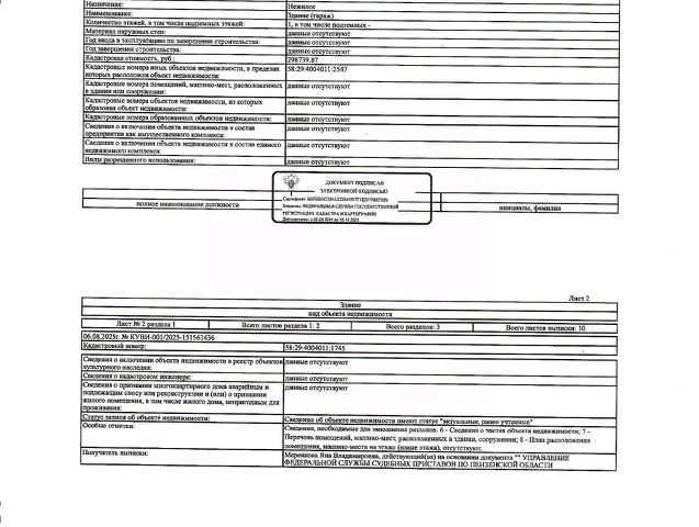 Данные получены с сайта ГИС Торги. Нежилое здание (гараж) площадью 19,6 кв.м., с кад. 58:29:4004011:1745, находящееся в пределах объекта недвижимости с кад. 58:29:4004011:2547. Гараж принадлежит должнику Рудакову В.И. Согласно ответа УМИ г. Пензы, Рудаков В.И. является арендатором земельного участка площадью 32,94 кв.м., являющегося частью земельного участка с кад. 58:29:4004011:1271, находящегося по адресу г. Пенза, ул. Захарова, 18-В. Сведениями о задолженности по обязательным платежам, а также о фактическом состоянии объекта недвижимости организатор торгов не располагает. Техническая документация и фотографии гаража отсутствуют у организатора торгов