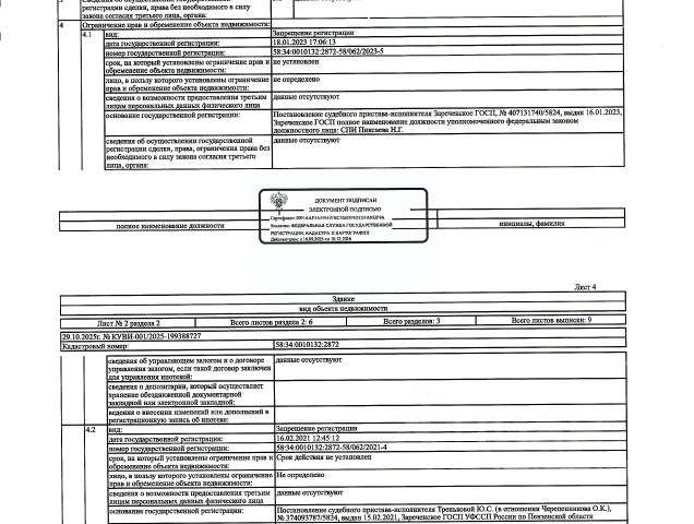 - Гараж кадастровый номер 58:34:0010115:2287, (реестровый номер федерального имущества П13590000374), назначение: нежилое, площадь 58, 4 кв. м, местоположение: Пензенская область, г. Заречный, ГСК "Гранит", блок 5, место 73.