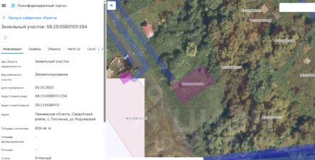 Земельный участок из категории земель - земли населенных пунктов, разрешенное использование для индивидуального жилищного строительства (код 2.1), с кадастровым номером 58:25:0590101:294, общей площадью 609 кв.м., адрес (местоп...