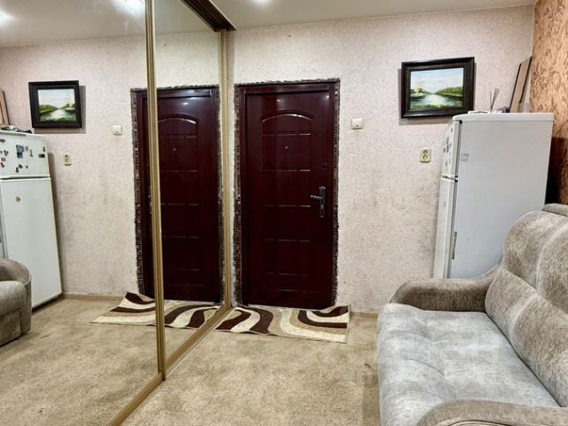 Комната в хорошем состоянии, полы бетон, заменена дверь в комнату, установлены пласт.окна в комнате и кухне, есть мебель необходимая для проживания (вместительная стенка в комнате, 2 шкафа, обеденный стол со стульями, диван, два кресла, есть холодильник и микроволновка, на кухне установлена стиральная машинка и кухонный гарнитур).