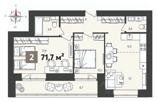 Продаётся 2-комнатная квартира в сданном доме (дом 4-1), срок сдачи: II-кв. 2025, общей площадью 72 кв.м., на 5 этаже. ЖК "Новелла" имеет выгодное расположение: парки, скверы, роллердром, широкий выбор магазинов - все в шаговой доступности.Во дворе "Новеллы" запланированы современные игровые комплексы с безопасным покрытием и шумозащитный экран по периметру - для сохранения вашего спокойствия. Поэтому "Новелла" - воплощение мечты людей, которые ежедневно ищут варианты жилья доступного, но при этом комфортного и не удаленного от городских мест притяжения.ЖК "Новелла" с точки зрения планировок - это сочетание традиций и инноваций: можно подобрать квартиру классической планировки, а можно выбрать, например, с окном в санузле или большой кухней-гостиной, из которой можно попасть во все другие комнаты.В вашей истории должно быть красивое жилье и безопасный двор для спокойного отдыха. Жилой комплекс "Новелла" - новая история вашей жизни.
