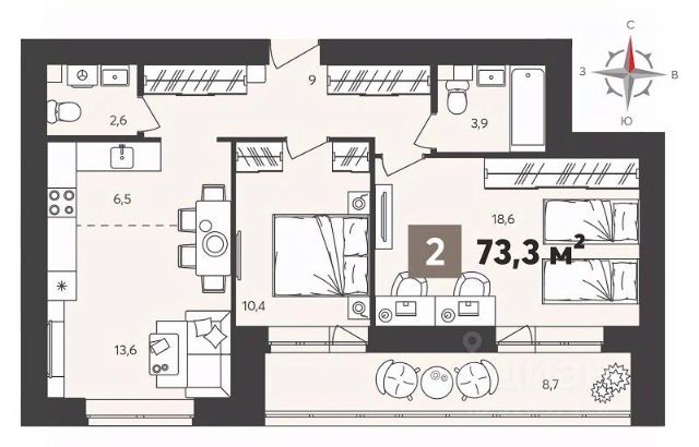 - кухня-гостиная 15,9 м2) с выходом на открытый балкон;