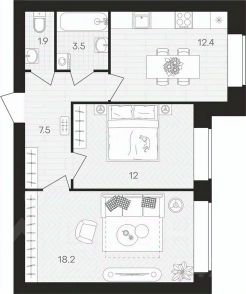Продается 2-комн. квартира (евро-трехкомнатная) в кирпичном доме Комфорт-класса 2026 года постройки с отличной планировкой и видом из окна. ЖК Кантри (застройщик Рисан ) по ул. Июльская, д. 2 к3