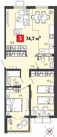 Трехкомнатная квартира в ЖК "Радужные дворы" на 9 этаже. Квартира без отделки, после выдачи ключей можно делать ремонт. Общая площадь: 74.7 кв.м., жилая: 43.1 кв.м., площадь просторной кухни-столовой: 12.1 кв.м. Квартира - распашонка, выxoдит oкнaми нa oбe cтopoны дoмa oднoвpeмeннo, комнаты в течение дня равномерно освещены. В квартире один балкон, один совмещенный и один раздельный санузел. Высота потолков 2.68 м. Дом панельный, многоподъездный, переменной этажности, от 12 до 16 этажей. Квартира находится в 1-й секции высотой 16 этажей в корпусе 77. На этаже 11 квартир. В подъезде 1 пассажирский и 1 грузовой лифт. Окончание строительства - 2 квартал 2025 года. Оформление сделки по договору купли-продажи. Условия покупки в октябре: 1. Рассрочка на 5 лет, на 3 года, с первым взносом от 10%, 2. Ипотека от 4,6%, 3. Трейд-ин, 4. Дисконт 3% для участников СВО и членов их семей. О ЖК "Радужные дворы": Современный квартал, который состоит из четырех жилых комплексов (Синий двор, Желтый, Оранжевый и Зеленый) с закрытыми дворами без машин. Архитектура и благоустройство каждого двора выполнены в уникальной цветовой гамме. Парковка организована по периметру домов. Расположение и транспортная доступность: Микрорайон Город Спутник, неподалеку река Сура, озеро и всего 15 минут на авто до центра Пензы. Инфраструктура: 2 собственных детских сада на 120 мест каждый, в шаговой доступности две школы, детская поликлиника, аптеки, кафе и магазины. Во дворах — детские игровые комплексы, спортивные площадки, зоны с тренажерами, беседки, перголы и зоны для барбекю. На первых этажах — колясочные комнаты. Благоустройство: Продуманные зоны отдыха для всех возрастов: территории с деревьями и кустарниками, подобранными под цветовую концепцию дворов. Фасады оборудованы корзинами для кондиционеров для сохранения эстетики. Безопасность: Закрытые дворы, круглосуточное видеонаблюдение на территории, в подъездах и лифтовых холлах. Отсутствие машин во дворах обеспечивает безопасность детей. #25c1zs
