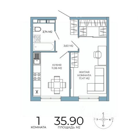 Продaeтся уютная квартира-cтудия в ЖК Aрбeкoвская Заставa