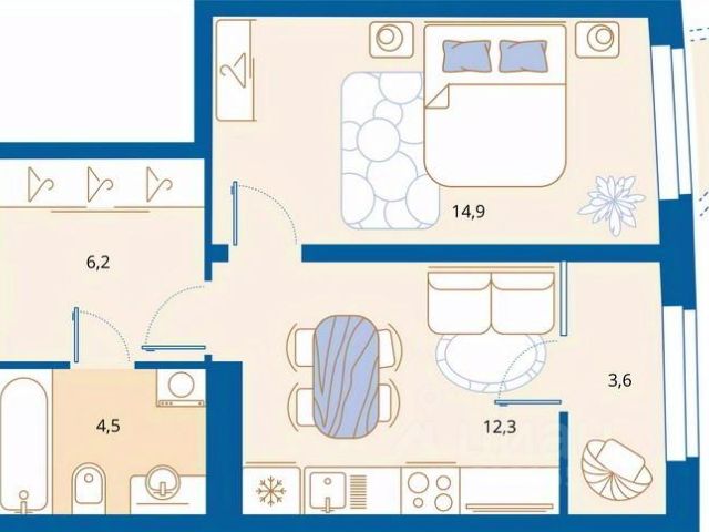 общая площадь квартиры составляет 76.25 кв. м., одна из самых больших классических планировок 2х комн.квартир в этом доме, шикарные видовые характеристики с высоты 12 этажа!