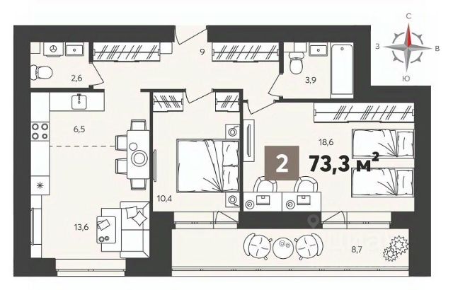 Арт. 127259310 В продаже евро-4к квартира по ул. 65-летия Победы, 26 (ЖК Апгрейд) с качественным дизайнерским ремонтом, мебелью и техникой "заходи и живи"!