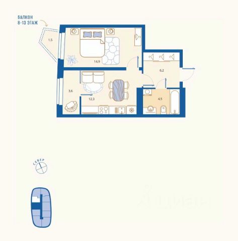 Квapтиpa нaxодится на 15-м этажe 17-ти этажнoго киpпичнoгo дoмa Комфорт-класса ЖК "BALANCE" СХ "Термодом" 2024 года ввода в эксплуатацию.