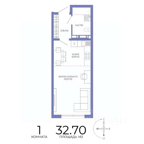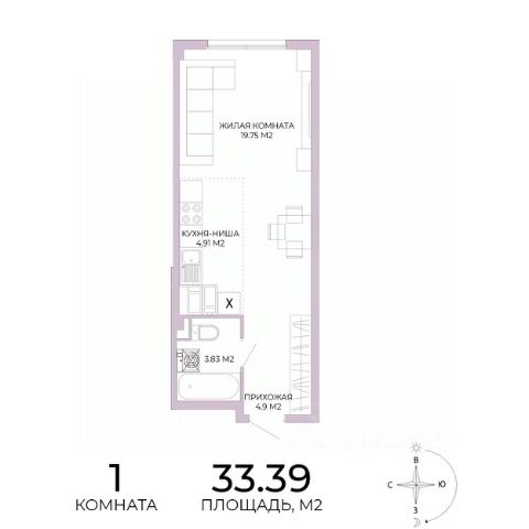 Жилая 28,4 кв.м.