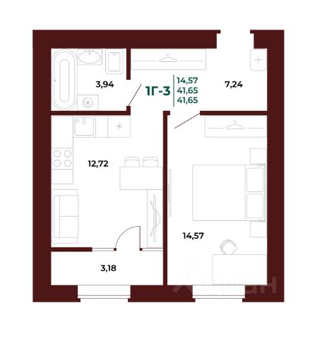 Общая площадь 45,9 кв.м.