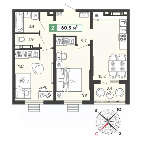Продаётся 1-комнатная квартира в строящемся доме (дом 2 (Пегас)), срок сдачи: IV-кв. 2026, общей площадью 46 кв.м., на 16 этаже. ЖК "Созвездие" - это жилой комплекс комфорт-класса из шести домов (17, 25 и 30 этажей), расположенный на берегу озера и отвечающий последним технологическим стандартам.Двор ЖК "Созвездие" спроектирован закрытым, здесь будут космические цветы и беседки в виде звездных систем, необычные детские площадки и широкие дорожки в окружении зелени, зоны спорта и солярия.На территорию ЖК можно будет попасть через единую входную группу, где на первом этаже появятся пункт охраны, колясочные, установят почтовые ящики, обустроят комфортную зону для встречи гостей. На втором - соседский центр площадью 500 кв. м с детской и лаундж-зоной, игровым пространством и даже уютным кухонным уголком.