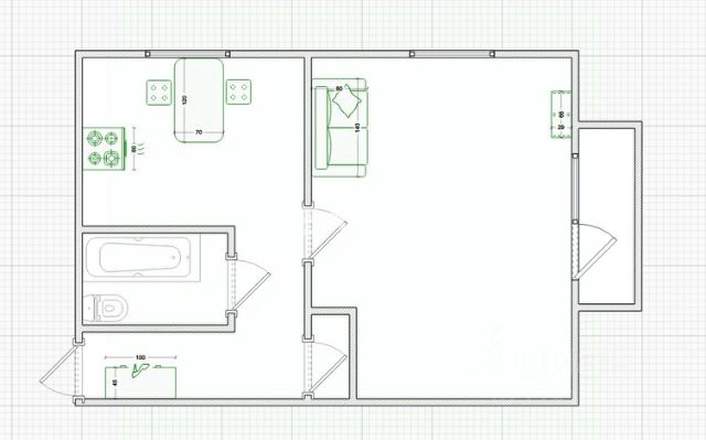 Жилая 4 комнаты 35,6 кв.м. (15,3+11,4+8,9)