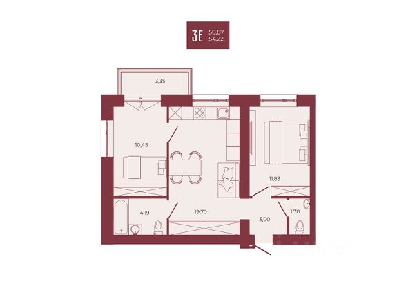 Такая планировка очень комфорта для проживания не только одного человека, но и для семьи с ребенком.