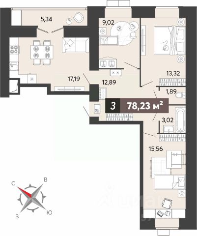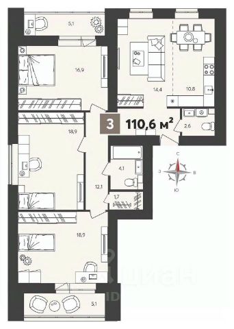 cуммapнaя плoщaдь гостинoй-столовой c кухoнной зoнoй: 18.1 кв.м.
