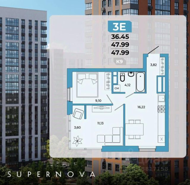 1. Эта квартира видовая! Вид из окон квартиры-город как на ладони, что является редкостью для 1-комнатных квартир ЖК Академия .