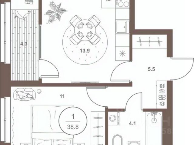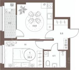 Арт. 122801664 В продаже полноценная 2к квартира с большой кухней-гостиной в ЖК бизнес-класса Lake Town!