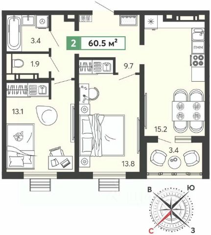 2-комн. квартира с предчистовой отделкой в ЖК "Созвездие" на 2 этаже. Общая площадь: 64.3 кв.м., жилая: 23.9 кв.м., площадь просторной кухни-столовой: 19.9 кв.м. Угловая квартира, окна oбecпeчивaют paвнoмepнoe ocвeщeниe в тeчeниe дня. В квартире одна лоджия, один раздельный санузел. Высота потолков 2.7 м. Квартира находится в корпусе Лира. Дом кирпичный, одноподъездный, высотой 17 этажей. На этаже 8 квартир. В подъезде 1 пассажирский и 1 грузовой лифт. Окончание строительства - 1 квартал 2026 года. Оформление сделки по договору долевого участия. Условия покупки: 1. Рассрочка на 5 лет и на 3 года. ПВ от 20% 2. Ипотека от 4,6% 3. Дисконт 3% для участников СВО и членов их семей 4. Трейд ин на недвижимость в Пензенской области О ЖК "Созвездие": Третья очередь жилого комплекса "Созвездие" в Городе Спутнике представлена кирпичными 17-этажными домами "Лира", "Пегас" и "Феникс" с продуманными планировками и предчистовой отделкой. Концепция ориентирована на активных людей, ценящих комфорт и стиль. Расположение и транспортная доступность: ЖК расположен в центральной части Спутника, в 5 минутах ходьбы от набережной и фонтана. Рядом запланирован пешеходный бульвар. Развитая транспортная инфраструктура: 4 автобусных и троллейбусных маршрута, до центра Пензы всего 15 минут. Инфраструктура: В шаговой доступности 2 школы, 5 детсадов, детская поликлиника, ФОК "Дельфин", набережная и парк аттракционов. На первых этажах домов — коммерческие помещения (магазины, аптеки, салоны красоты). Благоустройство: Закрытый двор без машин с уникальным космическим дизайном: сухой фонтан "Планета", амфитеатр, детские площадки, канатный комплекс, зоны для спорта и настольных игр. Озеленение хвойными и лиственными деревьями. Безопасность: Двухуровневая система контроля доступа: на территорию двора и в подъезды. #Zs2Vi7