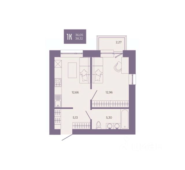2. Планировка квартиры 44м2 евродвушка, есть: