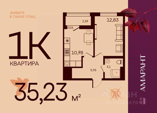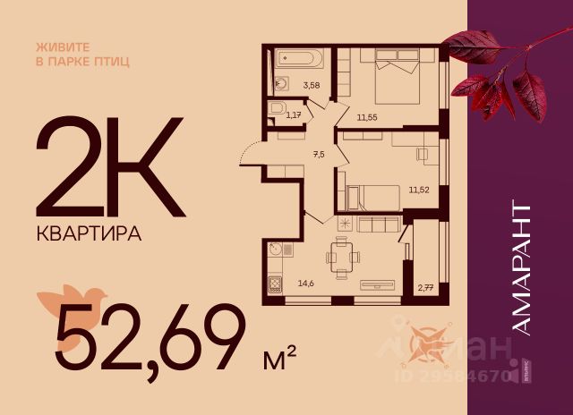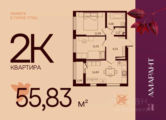 Арт. 122801664 В продаже полноценная 2к квартира с большой кухней-гостиной в ЖК бизнес-класса Lake Town!