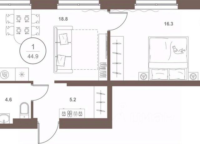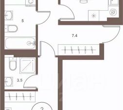 Арт. 122801664 В продаже полноценная 2к квартира с большой кухней-гостиной в ЖК бизнес-класса Lake Town! Сдача дома уже в этом году!