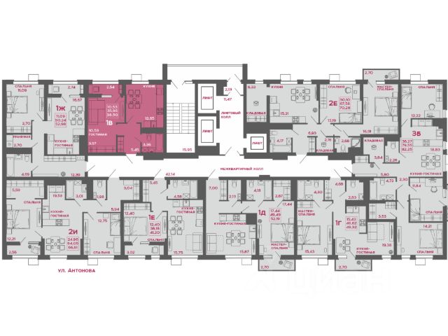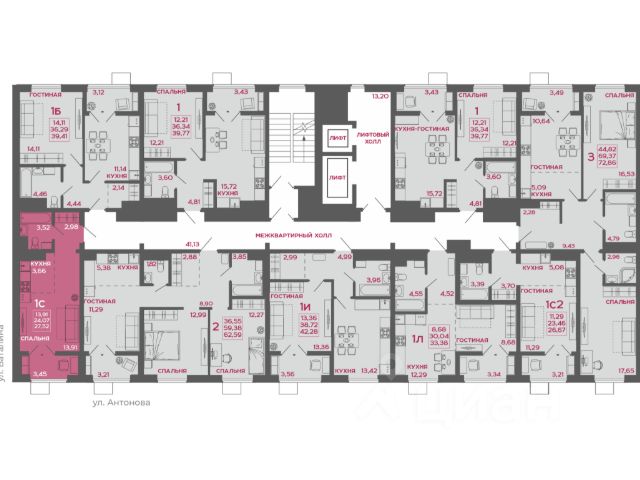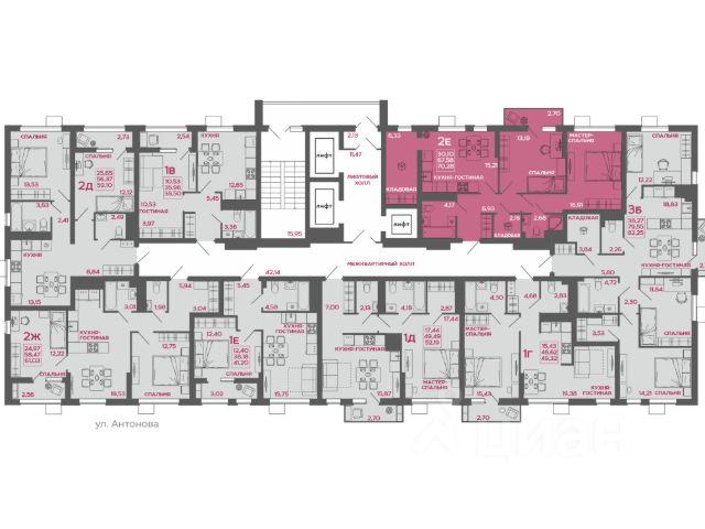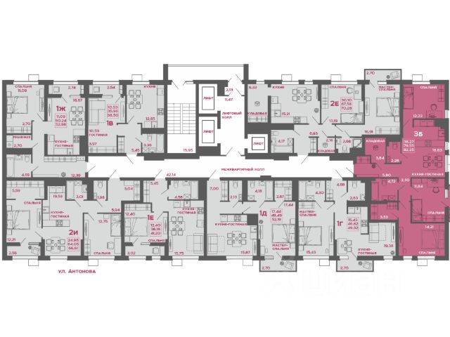 Общая площадь: 87.7 кв.м. (с учетом лоджии)