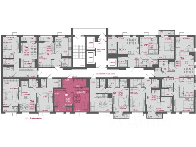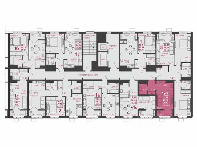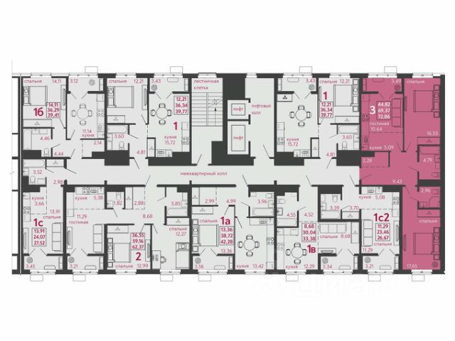 Жилая площадь: 44.3 кв.м.