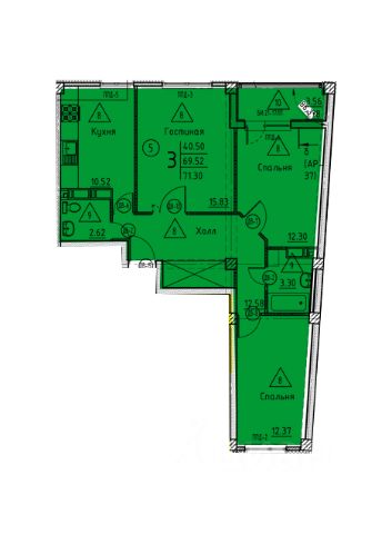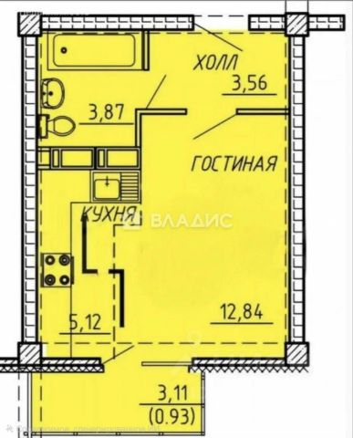 Общая площадь 36,84 кв.м.