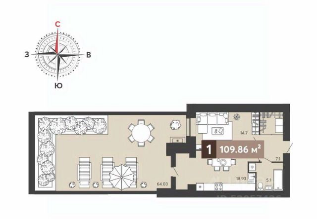 Арт. 117110739 Продается престижная современная однокомнатная квартира с евроремонтом по ул. Щербакова 75 с шикарным видом на город.