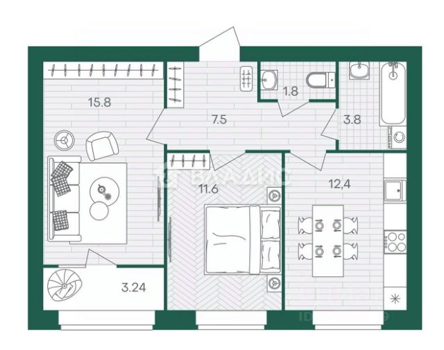 Отапливаемая лоджия: 4,61 кв.м.