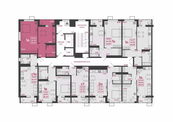 Общая площадь: 44,01 м2