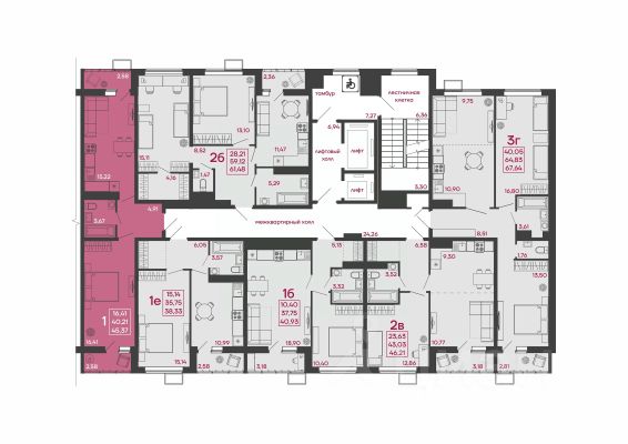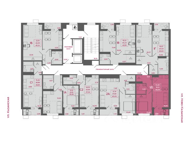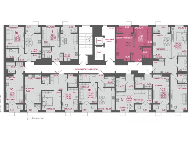 Общая площадь: 44,01 м2