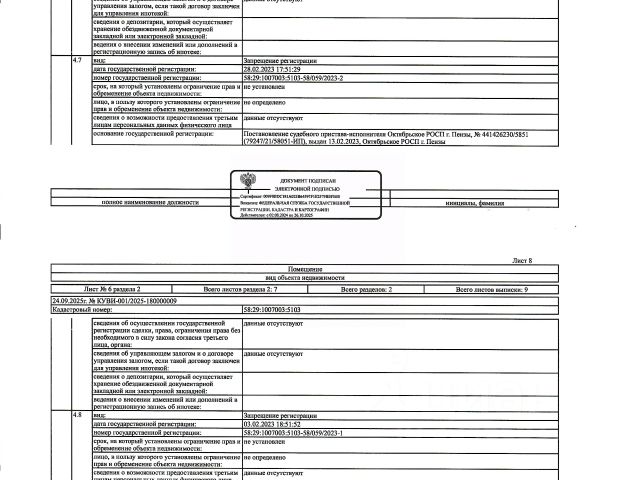 Данные получены с сайта ГИС Торги. Жилое помещение (комната) общей площадью 20,5 кв.м., кад. 58:29:1007003:5103, этаж 5, находящееся в пределах объектов недвижимости с кад. 58:29:1007003:1164, 58:29:1007003:4734, принадлежащее должнику Трошкину А.В. По месту нахождения объекта зарегистрировано четыре гражданина, в т.ч. двое - несовершеннолетние. Сведениями о задолженности по коммунальным платежам и взносам на капитальный ремонт, а также о фактическом состоянии объекта недвижимости организатор торгов не располагает. Техническая документация и фотографии объекта отсутствуют у организатора торгов
