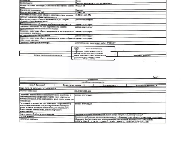 Данные получены с сайта ГИС Торги. Помещение жилое, площадью 39,30 кв.м., общая долевая собственность , дата государственной регистрации 22.06.2023, номер государственной регистрации 58:22:0480101:246-58/069/2023-10. кадастровый (ли условный ) номер объекта: 58:22:0480101:246, адрес: Российская Федерация, Пензенская область, Никольский район, с. Ахматовка, ул. Прудная, д. 18 кв. 1, основание государственной регистрации, Договор о оформлении в общую долевую собственность жилого помещения, приобретенного с использованием средств материнского капитала, 58 АА, 1946406-1946407, выдан 21.06.2023