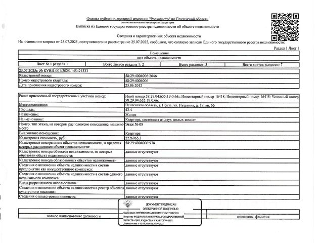 Никто не зарегистрирован, не проживает, один взрослый собственник, полная стоимость в договоре.