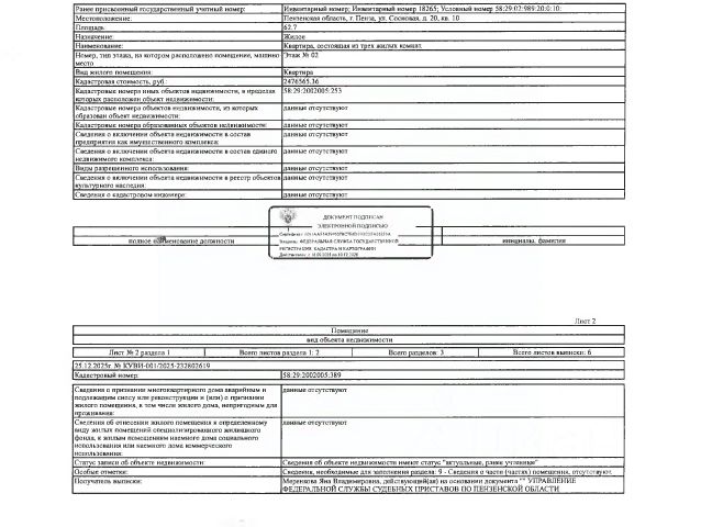 Данные получены с сайта ГИС Торги. Жилое помещение (комната 15) площадью 13,2 кв.м., кад. 58:29:4002011:1187, находящееся в пределах объектов недвижимости с кад. 58:29:4002011:502 и 58:29:4002011:603, принадлежащее должнику Борисову В.А. Зарегистрировано двое гражданин. Сведениями о размере задолженности по коммунальным услугам и взносам на капитальный ремонт, а также о фактическом состоянии объекта недвижимости, организатор торгов не располагает. Ключи, техническая документация и фотографии объекта отсутствуют у организатора торгов.