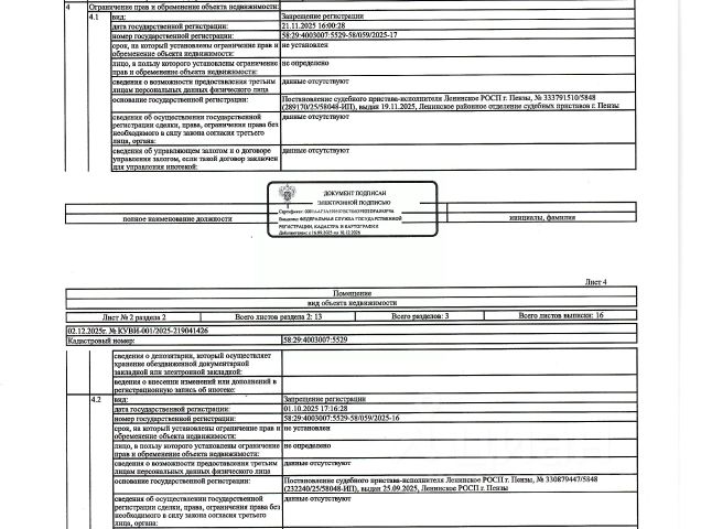 Данные получены с сайта ГИС Торги. Жилое помещение (квартира) общей площадью 69,3 кв.м., кад. 58:29:4004007:1540, принадлежащее должнику Бояровой Е.С. Зарегистрировано двое граждан, в т.ч. один несовершеннолетний. Сведениями о размере задолженности по коммунальным услугам и взносам на капитальный ремонт, а также о фактическом состоянии объекта недвижимости, организатор торгов не располагает. Ключи, техническая документация и фотографии объекта отсутствуют у организатора торгов.