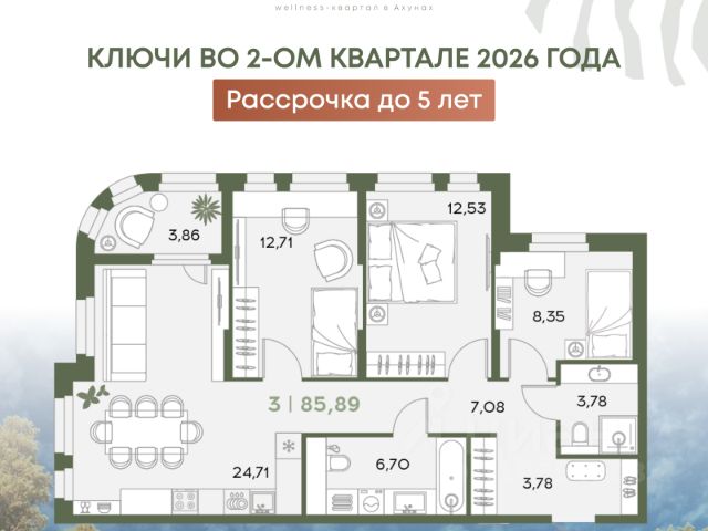 ЛЕС wellness-квартал в экологически чистом районе Ахуны Сдача первой очереди летом 2026 года! Квартиру можно посмотреть уже сейчас Большой выбор условий оплаты от DEWELL group: - Ипотека от 4,6% без удорожания - Рассрочка до конца строительства 0% - Рассрочка до 5 лет, без участия банка - Рассрочка в первоначальным взносом 1 000 000 рублей - TRADE IN от застройщика Преимущества wellness-квартала ЛЕС: Собственный лесной парк, где под тенью сосен расположилось множество зон для отдыха и развлечений: - Зоны для занятий йогой - Беседки для пикника - Детское пространство с горками, батутами и качелями - Универсальная спортивная площадка летом, которая зимой превращается в каток Дворовое пространство: - Детские велодорожки на территории двора - Навесы с ширмами для отдыха - Детское пространство с площадкой для игры с водой, большая песочница с навесом - Гамаки и лежаки для тихого отдыха -Спортивные зоны с теннисными столами *Огороженная и охраняемая территория двора без машин Авторские холлы с зоной ожидания, санузлами, колясочными и велосипедными Квартиры с видом на лес: - Просторные кухни-гостиные - Мастер-спальня - Закрытые лоджии - Летние лоджии - Уникальные лоты с потолками 3,3м Расположение: -Ввело-лыже-роллерная трасса-1 мин пешком -Школа 19/Детский сад 23- 5 мин на машине -Открытый бассейн-6 мин на машине -Теннисный корт "Семейный"-6 мин на машине -Русская охота-8 мин на машине -Высшая лига-15 мин на машине *Стоимость актуальна на момент размещения объявления