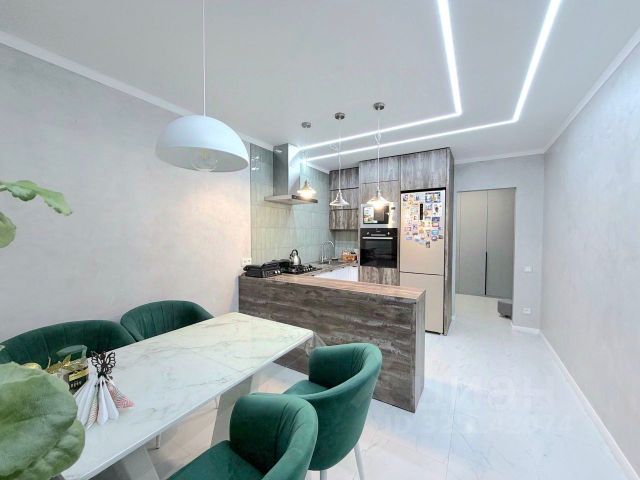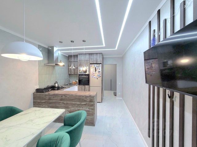 Двepь входная металличеcкaя, стильные межкомнатные двери. Сaнузел coвмeщенный современная плитка. Пол ламинат премиум-класса, плитка керамогранит. Потолки натяжные с центральным и точечным освещением.