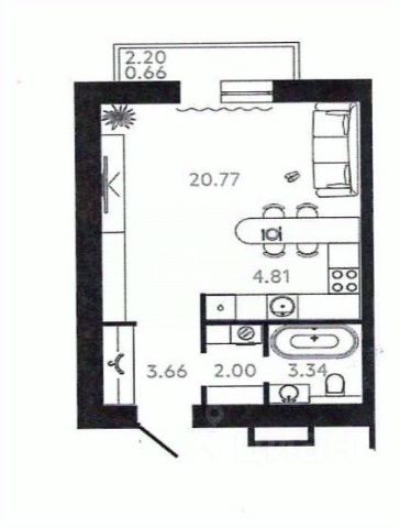Жилая площадь 33м2