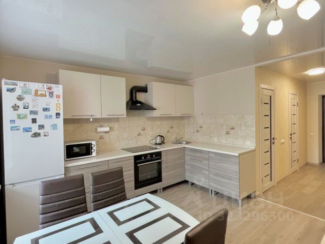 Качественный кухонный гарнитур .Фасады выполнены из МДФ + СОФТ ТАЧ пленка. Стены в кухне и коридоре крашены водостойкой краской, потолки во всей квартире натяжные белые матовые, освещение комбинированное, споты, люстры, настенные светильники и диодные ленты.