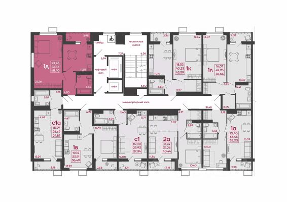 Общая площадь: 43,5 кв.м. ( с учетом балкона )