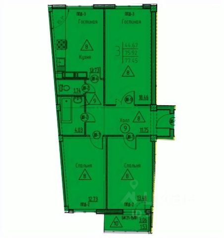 - кухня 11,01 кв.м, три просторные спальни 19,22 кв.м., 15,96 кв.м., 12,34 кв.м. плюс дополнительную площадь к жилому пространству составляет ЗАСТЕКЛЕННАЯ ЛОДЖИЯ 3,38 кв. м. Большой вместительный коридор, где отлично разместятся зоны хранения. И два больших раздельных сан.узла. Отличный вариант для большой семьи!