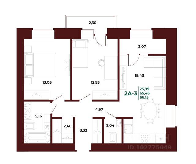 Продаётся 2-комнатная квартира в строящемся доме (1 этап), срок сдачи: III-кв. 2027, общей площадью 66.73 кв.м., на 18 этаже. Новый жилой комплекс "АРБЕРИ" от застройщика "ГК Автор" расположен по адресу Пенза, проспект Строителей.